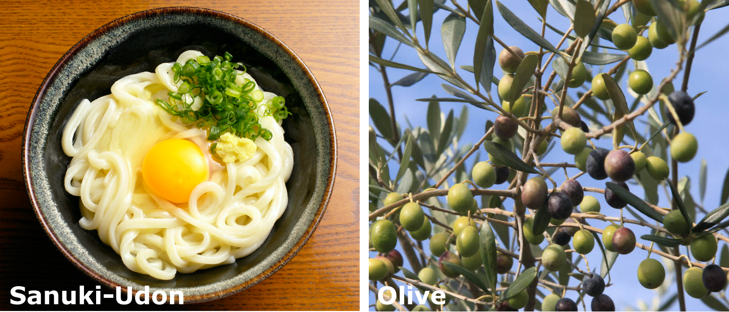 Kagawa prefecture, also nicknamed "Udon Prefecture" is best known for its Sanuki-Udon. As the first place in Japan to successfully cultivate olives, Shodo island in Kagawa is famous for olive production. You can buy many products such as foods, oils and cosmetics made from olives.